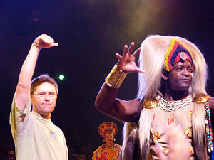 Was I sitting in the right seat? Did I look like a leader of pachyderms? Whatever the reason, I was chosen to be the King of the Elephants. It was my first time on stage in 24 years. I’m told my legs weren’t shaking visibly, though I have my doubts. Truth be told, I have been trying to make that elephant-trumpet sound all my life, and my lips just won’t do it. So I did my best to improvise. I hope I faked it well enough. Thank you so much for making me a part of such a wonderful production. |